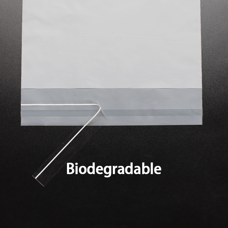Eco-friendly biodegradable self-adhesive bags made from PLA, PBAT and corn starch. Compostable, durable and customizable for clothing, shoes and e-commerce packaging.